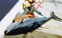 Atlantic bluefin tuna is one of the most highly prized fish used in Japanese raw fish dishes. About 80% of the caught Atlantic and Pacific bluefin tunas are consumed in Japan.[57] Bluefin tuna sashimi is a particular delicacy in Japan. For example, an Atlantic bluefin caught off eastern United States sold for US$247,000 at the Tsukiji fish market in Tokyo in 2008.[58] This high price is considerably less than the highest prices paid for Pacific bluefin.[57][58] Prices were highest in the late 1970s and 1980s.