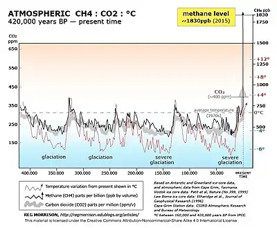 - ↑ Dlugokencky, Ed (December 5, 2016). "Trends in Atmospheric Methane". Global Greenhouse Gas Reference Network. NOAA Earth System Research Laboratory. Retrieved December 22, 2016.
