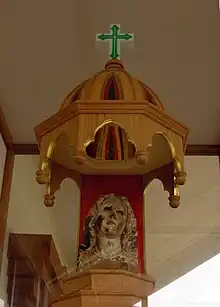 After the persecution of Christians in Japan ended, Japanese Catholics purchased land in Nagasaki where fumi-e interrogations once took place.[1] On that land, the Urakami Cathedral was built and consecrated in 1925. Three years later, a wooden altarpiece depicting Mary was constructed, inspired by a painting by the Spanish artist Bartolomé Murillo.[2][3] The statue was constructed in Italy.[4]