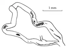 ![]() Drawing of the reproductive system: detail of the penial lumen after a transparent specimen. |