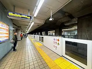 Atsuta Jingu Temma-cho Station (熱田神宮伝馬町駅, Atsuta-Jingū-Tenmachō-eki) is an underground metro station located in Atsuta-ku, Nagoya, Aichi Prefecture, Japan operated by the Nagoya Municipal Subway's Meijō Line. It is located 23.4 kilometers from the terminus of the Meijō Line at Kanayama Station.[1] This station provides access to Atsuta Shrine.
