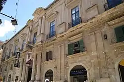 During this time, the garden of the auberge was reduced in size with the sale to third parties of the two plots on Strait Street. The architect behind the project and the design of the new façade was Captain Antonio Garsin.[2] The design of the new façade was a clear proponent of the French classical style. The creation of street-level shop fronts also changed the dynamics of the use of the building. The common areas and halls used by the Knights where now relocated to the first and second floor of the building. It was also during this period that the Gran Salon took shape.