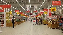 Auchan (branded as Aшан) has been active on the Russian market since 2002 and had over 100 hypermarkets in the country by December 2016. It's the company's third largest market, after France and China.[21] Revenues for the country reached $5 billion in 2014, ranking third behind the local retailers X5 Retail Group and Magnit.[22] In 2016 it was ranked first in a list of the largest foreign-owned companies by the Russian edition of Forbes.[23]