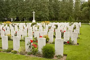 Currently, 528 Commonwealth soldiers are buried in the cemetery. 487 soldiers are identifiable, including 457 British, 8 Canadians, and 2 New Zealanders.[2]