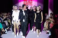 Juozas Statkevicius on stage at his "Black And White" collection presentation