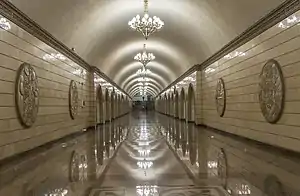 Auezov Theater (Kazakh: Мұхтар Әуезов атындағы театры, Muhtar Áýezov atyndaǵı teatry; Russian: Театр имени Мухтара Ауэзова) is a station on Line 1 of the Almaty Metro. The station opened on December 1, 2011.[1]