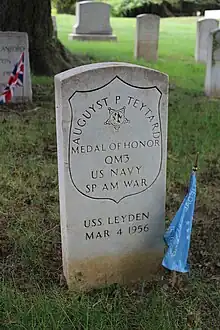 - ↑ "AUGUST TEYTAND DIES; Navy Man Won the Medal of Honor for '03 Rescue Feat". The New York Times. March 9, 1956. p. 23. Retrieved September 25, 2010.