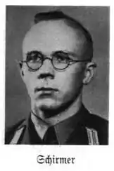 August Schirmer (born 16 June 1905 in Celle; died 30 October 1948 in Celle) was a German architect, engineer, elected member of the Reichstag, Central Office Manager in the Amt Rosenberg. From 1939 until 1943 he was head of an antisemitic propaganda publication service and news agency called Welt-Dienst / World-Service / Service Mondial.