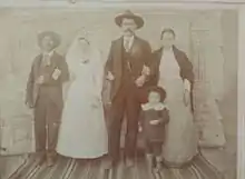 Auguste married Maria Rosa Arellano April 26, 1855, at Nuestra Señora de Los Dolores in Arroyo Hondo.[3] Maria Rosa was born in 1833 in the Mexican territory of Santa Fe de Nuevo México before the Mexican Cession of the Mexican–American War. Her grandmother was known as "Josefa la Apache". She died while the LaCome family lived in San Luis, Colorado.