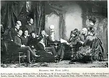 Under the Gaslight (1867) is an example of Daly's mixture of realism and melodrama, seen in the authenticity of his depiction of real locations and in his use of social commentary.[8] The play introduced the now-clichéd device of the villain tying someone to railroad tracks, although in a reversal of the usual roles it was the hero who was tied up and the heroine who saved him.[9] In the book Vagrant Memories, the author, William Winter recalls how Daly came up with the device. He says: "He once told me under what circumstances he hit upon this device. He was walking home toward night, thinking intently about the play which he had begun to write, when suddenly the crowning expedient occurred to him and at the same instant he stumbled over a misplaced flagstone, striking his right foot against the edge of the stone and sustaining a severe hurt. "I was near my door," he said, "and I rushed into the house, threw myself into a chair, grasping my injured foot with both hands, for the pain was great, and exclaiming, over and over again, 'I've got it! I've got it! And it beats hot-irons all to pieces!" I wasn't even thinking of the hurt. I had the thought of having my hero tied on a railroad track and rescued by his sweetheart, just in the nick of time, before the swift passage of an express train across a dark stage.[10]