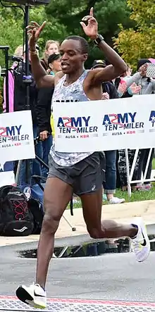 ![]() Maiyo winning the Army Ten-Miler in 2016 | |