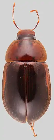 Medium-sized beetles (5.8–7.5 mm), smooth and shiny dorsally, orange-brown in coloration, with long maxillary palps. A complete diagnosis was presented by Girón and Short.[1]