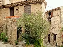 Auribeau-sur-Siagne is a medieval village dating from the 11th century located some 10 km north-west of Cannes and 6 km south-west of Grasse. Perched on a rocky spur, the village overlooks the Siagne river. Access to the commune is by road D9 from Pégomas in the south-east which passes north through the eastern part of the commune and continues to Grasse in the north. The village, which is in the south of the commune, is accessed by local roads. The commune is served by the Sillages bus network Route 29 (Pégomas - Grasse) that has nine trips per day on weekdays.[4] There are extensive residential urban areas in the commune with the areas of Le Gabre, Les Vayoux, Le Moulin Vieux, Carel, and Le Couloubrier. The rest of the commune is forested with a few small patches of farmland.[5]