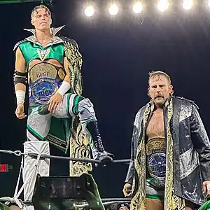 ![]() Aussie Open in 2023 during their simultaneous reigns as IWGP Tag Team Champions and Strong Openweight Tag Team Champions | |