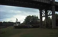 The Severn Princess derelict beneath the railway bridge at Chepstow, 2010