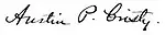 Austin Phelps Cristy (May 8, 1850 – December 1, 1926) was a newspaper publisher.[1][2] He was born in Morristown, Vermont, to John Baker Cristy and Louisa Lydia Cristy, née Cooke. He attended Reading High School in Reading, Massachusetts, and Monson Academy in Wilbraham.[2] He was at Amherst College for three terms in 1869 and 1870, but did not graduate there;[3] he gained a Bachelor of Arts degree from Dartmouth College, graduating in 1873. He was admitted to the bar in about 1874 and began practicing law in Marblehead, then opened a law office in Worcester the following year. From 1882 to September 1884 he was assistant clerk of the Central District Court in Worcester.[2]