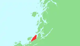 Austra is an island on the border between Trøndelag and Nordland counties in Norway. The 88-square-kilometre (34 sq mi) island is shared between the municipalities of Bindal, Leka, and Nærøysund. The highest point is the 588-metre-tall (1,929 ft) Romsskåla. The village of Årset lies on the southeastern shore, along the Årsetfjorden. The village of Bogen lies on the east coast of the island where the bridge connects it to the mainland. The village of Horsfjord lies on the northern coast. The village of Gutvik lies on the western coast[1]