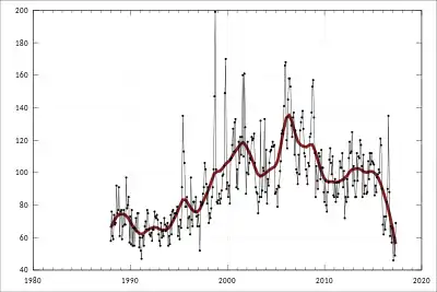 Some 90,000 Australians are resident in Hong Kong.[9] According to the 2016 Census, 86 886 people of Hong Kong origin live in Australia, with 280 943 Cantonese speakers in Australia, the largest number after Mandarin Chinese and Arabic.[10] The majority Hong Kong immigrants live in Sydney and Melbourne.[11]