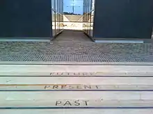 Through the passageway of light is the second element, the cobblestone Courtyard, a peaceful gathering space for personal reflection and ceremonial purposes. On the courtyard surface are bronze plaques inscribed with words describing the personal traits of Australian Peacekeepers progressing to the values, actions, activities and finally the objectives of international peacekeeping as the plaques advance across the courtyard in parallel with the path of travel from front to rear.