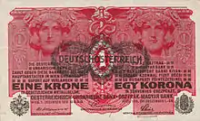 The first note-issuing institution in the Habsburg Monarchy was the Municipal Bank of Vienna or Wiener Stadtbank, established in 1706.[1] It started issuing banknotes in 1762, which were known as "Bancozettel". During the Napoleonic Wars, the imperial Austrian government issued paper money of its own and rapidly increased its supply to finance the war effort, causing inflation.