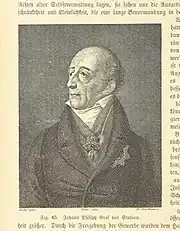 After peace was restored by the Congress of Vienna, and on advice from statesman Johann Philipp Stadion, Emperor Francis I established the privilegirte oesterreichische National-Bank by imperial patent on 1 June 1816. Its shareholders were private individuals, in contrast to the municipality-owned Wiener Stadtbank.[2]: 73 Its first task was the redemption of the depreciated wartime paper money to re-establish trust in the currency.[3] On 15 July 1817, it was granted another imperial patent to issue money by printing banknotes, and had its first permanent staff by January 1818. It soon started developing its network of branches throughout the Austrian Empire.[4]