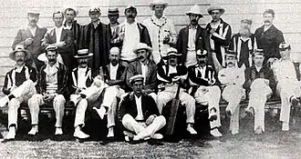 The original Authors Cricket Club was an offshoot of the Authors' Club, which had been founded in 1891 as a place for British authors to gather and talk.[3] Sherlock Holmes author Arthur Conan Doyle, an excellent cricketer who would go on to play ten first-class matches for the Marylebone Cricket Club in 1903, was a frequent bowler for the team.[4] The bat that Doyle used when he made 101 not out in a game of Authors vs. the Press in 1896 is still on display at the MCC Museum at Lord's Cricket Ground.[5]