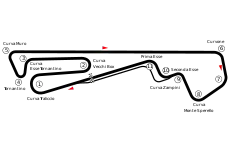 The construction of the 1.650 km (1.025 mi) long and technically challenging venue began in the spring of 1972 by a few motorsport enthusiasts (Lorenzo Rondini, Giulio Capolsini, Umberto Mannocchi, Paolo Bietoloni, Gianni Moretti, Francesco Terradura and Giuseppe Tarpani).[1] It held its inaugural race on April 7, 1973, and hosted motorcycle races and races of the Italian F3 Championship.