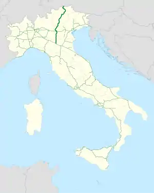 The Autostrada A22 (Italian: Autostrada del Brennero, Autobrennero, German: Brennerautobahn) is one of the most important motorways in Italy, as it connects Pianura padana, the city of Modena and the A1 motorway to Austria through the Brenner Pass, located in the municipality of Brenner.
