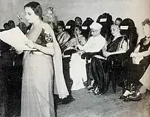 ![]() Avabai Wadia speaking at the Third International Conference 1952. Sarvepalli Radhakrishnan, Dhanvanthi Rama Rau and Margaret Sanger in attendance | |