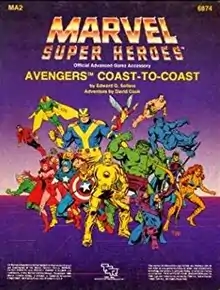 Avengers Coast to Coast is a sourcebook intended for players to use characters from the Avengers. It has sections which detail the Avengers' Charter and focus on the group's relationship with the United States government. Also included are detailed plans of the bases the Avengers use, their transport and equipment, and descriptions of characters from Marvel Comics.[2] The plot of the included adventure is that the Avengers have invited other heroes to apply for membership in their franchise operations, allowing the player characters the chance to join.[2]