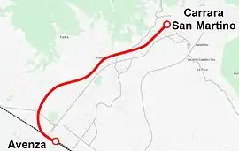 - ↑ "Decree of the President of the Republic no. 1459". Suppression of the railway line Carrara Avenza-Carrara St. Martino. December 28, 1970.