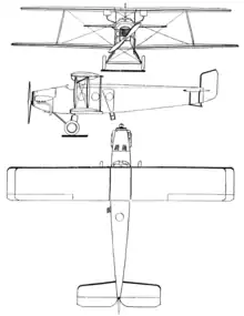 Typical of airliners of its time, it seated five passengers within its fuselage, whilst the pilots sat in an open cockpit above. Of conventional configuration, it was a single-bay bi-plane of equal span and unstaggered wings, with fixed tailskid landing gear. Originally designed for a Lorraine-Dietrich engine, this was changed to a Bristol Jupiter in service. After their withdrawal from airline use in 1936, some were used by the military for a while before finally becoming training targets.