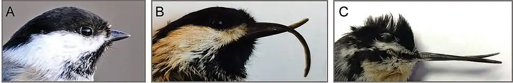 - ↑ Van Hemert, Caroline; Handel, Colleen M.; O’Hara, Todd M. (July 2012). "Evidence of accelerated beak growth associated with avian keratin disorder in black-capped chickadees (Poecile atricapillus)". Journal of Wildlife Diseases. 48 (3): 686–694. doi:10.7589/0090-3558-48.3.686. PMID 22740534. S2CID 13196007.