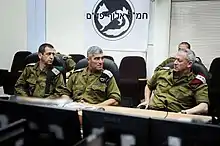 From right to left: Chief of Staff Benny Gantz, Commander of the Southern Command Tal Russo, and Chief of the Israeli Military Intelligence Directorate Aviv Kohavi