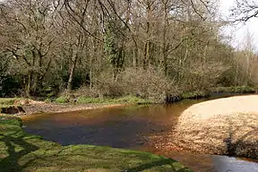 It is the smallest of three rivers (properly so called) which drain all but the north, west and east edges of the New Forest.[1] These flow south into the Solent: with the Lymington River then Beaulieu River, the furthest east.[2] It rises at many sources close to, south of, Burley, and, quite minutely ribbled in places, curves from south-east to south over its course of 9 miles (14.5 km).[3] It flows into the Solent at Keyhaven,[4] close to the shingle bank that leads to Hurst Castle.[3]