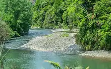 The Awakino River is a river located in the North Island of New Zealand. It has been described as one of the great rivers in the North Island providing top-quality backcountry fishing. Awakino township lies on its river banks.[1] It rises on peaks of up to 762 m (2,500 ft) in the Herangi Range[2] and flows 75 km (47 mi),[3] initially southerly and then through Awakino Gorge in a south-westerly direction.[4]