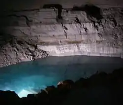 ![]() Large chamber with cave lake in Ayalon Cave | |