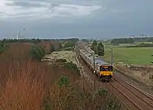 The line to Ayr was electrified and Class 318 electric multiple units introduced by British Rail in September 1986. The line was promoted as the AyrLine in Scotrail publicity. Along with the introduction of new trains, major work was undertaken refurbishing stations, major trackworks and rebuilding many bridges. At the same time resignalling was carried out, replacing the existing semaphore signals.[1] The full electrified service, including trains to Largs and Ardrossan Harbour, commenced on 19 January 1987.[1] These were supplemented by occasional use of Class 303 and Class 311 EMUs, then in use on the Inverclyde Line.