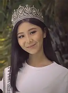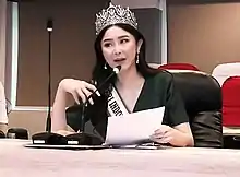 She was successfully crowned as the winner of Puteri Indonesia Lingkungan 2020 (Miss International Indonesia 2020).[36][37][38][39] by the predecessor of Puteri Indonesia Lingkungan 2019 and Miss International 2019 Top 8 Finalist Jolene Marie Cholock-Rotinsulu of North Sulawesi.[12][13][40][41] and won "Puteri Indonesia Nusa-Bali Islands 2020" special awards.[42][43][44][45] The final coronation night was graced by the reigning Miss International 2019, Sireethorn Leearamwat and Miss International 2017, Kevin Lilliana Junaedy as the guest star.[46][47][48]