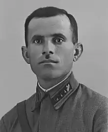Hazi Aslanov (Azerbaijani: Həzi Əhəd oğlu Aslanov, Һəзи Əһəд оғлу Асланов; Russian: Ази Агадович (also Агад оглы, Ахадович, Ахад оглы) Асланов; commonly described as Azi Aslanov and A. A. Aslanov,[1] 22 January 1910 – 25 January 1945) was an Azerbaijani[2] major-general of the Soviet armoured troops during World War II. He was awarded the Hero of the Soviet Union title twice. The second Hero title was posthumously awarded in 1991, by Mikhail Gorbachev, at the constant recommendations by Heydar Aliyev.[3]