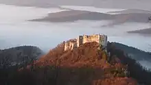 Bás possessed landholdings and villages along the river Garam (Hron) in Esztergom, Bars and Hont counties in Upper Hungary (present-day Slovakia). For his service and loyalty, Bás was granted the estate Mikola (later Garammikola, present-day a borough of Želiezovce, Slovakia) by Béla IV in 1247. The estate later became the centre of the Mezőpilis clan's landholdings in the region.[3] Prior to 1251, the king also donated the estate Szobotist in Nyitra County (today Sobotište, Slovakia) to him.[4] Bás served as ispán of Trencsén County at least from 1251 to 1259.[5] He built the fort of Ugróc (present-day ruins near Uhrovec, Slovakia). With the permission of the king, Bás sold the estate Szobotist "due to lack of money" to Aba the Great from the clan of the same name for 40 silver marks in 1251.[4] As ispán, Bás acted as royal commissioner to determine the borders of donated lands throughout Trencsén County in the 1250s, for instance in 1252, 1255 and 1256.[4]