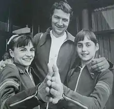 After the Olympics, Károlyi again clashed with Romanian Federation officials, and tension escalated. During a 1981 gymnastics tour, Romanian team choreographer Géza Pozsár and the Károlyis defected and sought political asylum in the United States, temporarily leaving their seven-year-old daughter Andrea with relatives in Romania.[7] They settled in Texas.[6][8][9]