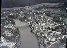 ![]() Büren with the historic wooden bridge spanning the Aare | |