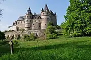 Bürresheim Castle (German: Schloss Bürresheim) is a medieval castle northwest of Mayen, Rheinland-Pfalz, Germany. It is built on rock in the Eifel mountains above the Nette. Bürresheim Castle, Eltz Castle and Lissingen Castle are the only castles in the Eifel region which have never been destroyed.[1] It was inhabited until 1921 and is now a museum operated by the General Directorate for Cultural Heritage Rhineland-Palatinate.[2]