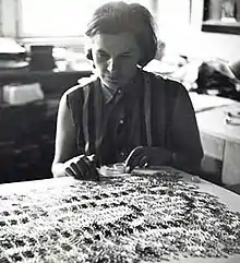 She therefore invented her own method and technology, the artificial negative. She pressed small objects into layers of paraffin on small pieces of cellophane, or she actually applied small fragments of natural and artificial materials. Instead of choosing the world that it is possible to photograph and represent as an exterior appearance, she chose the world that is possible to accept, to appropriate as an assemblage of material fragments, using light to transfer them into an autonomous picture on the sensitive surface of photographic paper.[7][6]