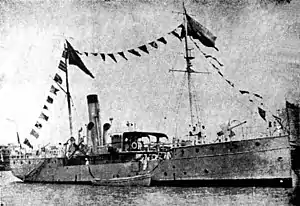 The Ecuadorian naval vessel Abdón Calderón was built in 1885 at Port Glasgow, Scotland by David Dunlop & Co as the cargo ship Chaihuin for Chilean shipowners Adam Greulich y Compañia of Valparaiso.[1] In December 1886 she was purchased by the Ecuador Government, becoming the war steamer Cotopaxi, and was armed with four breech-loading Armstrong cannons and two Gatling guns.[1] In 1892 Cotopaxi was redesignated as a cruiser.[1]