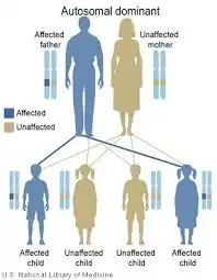 For each child an affected parent has, there is a 50% chance of passing on the mutation, regardless of the sex of the child autosomal dominant