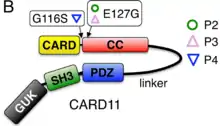 3. "CARD11 caspase recruitment domain family, member 11 [ Homo sapiens (human) ]". NCBI > Genes & Expression > Gene. NCBI. Retrieved 4 September 2014.