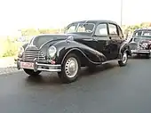 The 501 was introduced to the public in April 1951 at the Frankfurt Motor Show,[7][8] as was its less expensive, production-ready rival, the Mercedes-Benz 220. The 501 made an impression on the public with its solid engineering and its extravagance.[7] Its list price of more than fifteen thousand Deutsche Mark[7][9] was about four times the average yearly salary in Germany at the time.[7] The public nicknamed the 501 "Barockengel" (Baroque Angel) in reference to the curved, flowing style of the body, which was reminiscent of the Baroque era.[5][7]