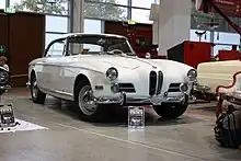 The BMW 3200 CS was a coupé built from 1961 to 1965.[28] The body was designed and built by Bertone and shipped to BMW's factory in Munich, where it was fitted to a 3200S chassis.[29] This was the last variant of the 501 to be manufactured by BMW.[29][30]